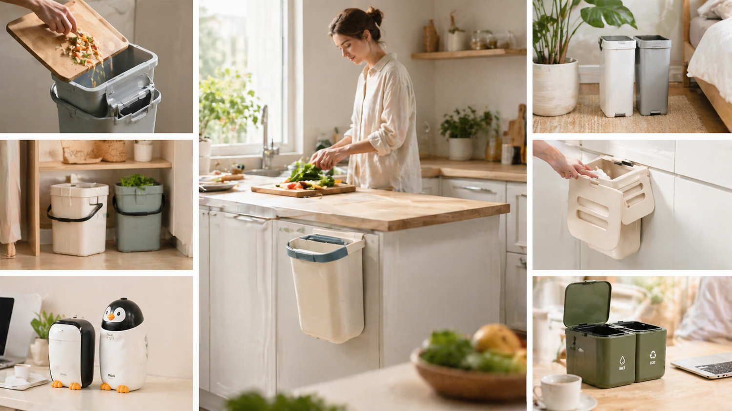 Modern Cream-Colored Slim Step-Free Trash Can - Wall-Mounted Waste Basket with Easy-Open Lid - DIY Small Space Garbage Bin for Modern Home & Kitchen
